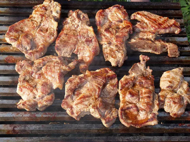 - Saucisses Barbecue , Blanche , Merguez , Bock wurst , Accompagnement Frites , salade Verte ou Salade Froide ( pates , patates , carottes …)